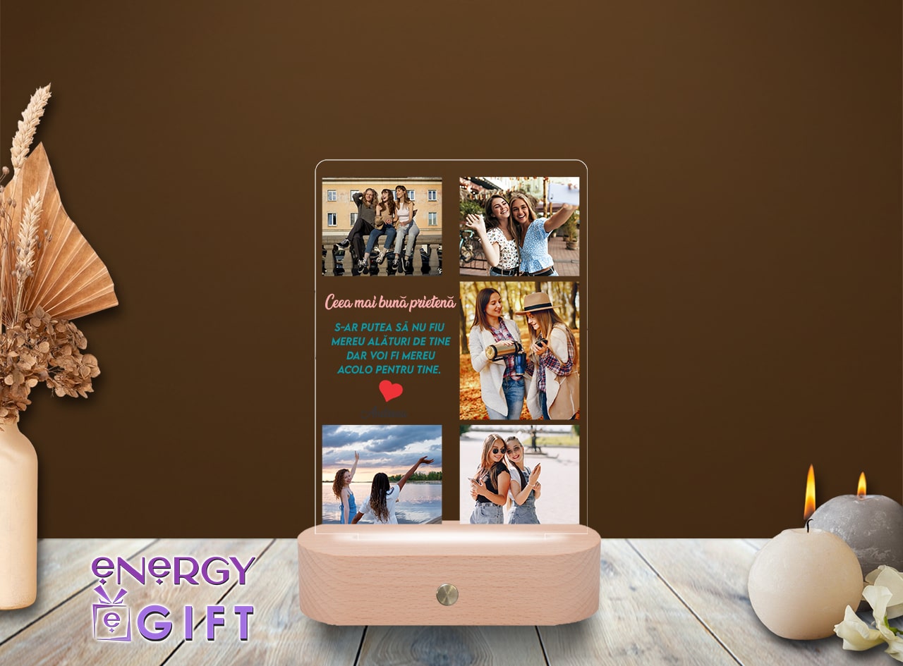 Un exemplu reprezentativ este lampa LED 3D personalizată – un cadou cu suflet, gândit pentru a fi oferit unei persoane dragi. Ea aduce laolaltă frumusețea unei fotografii personale și lumina caldă care o scoate în evidență.